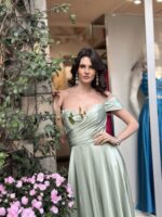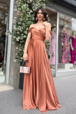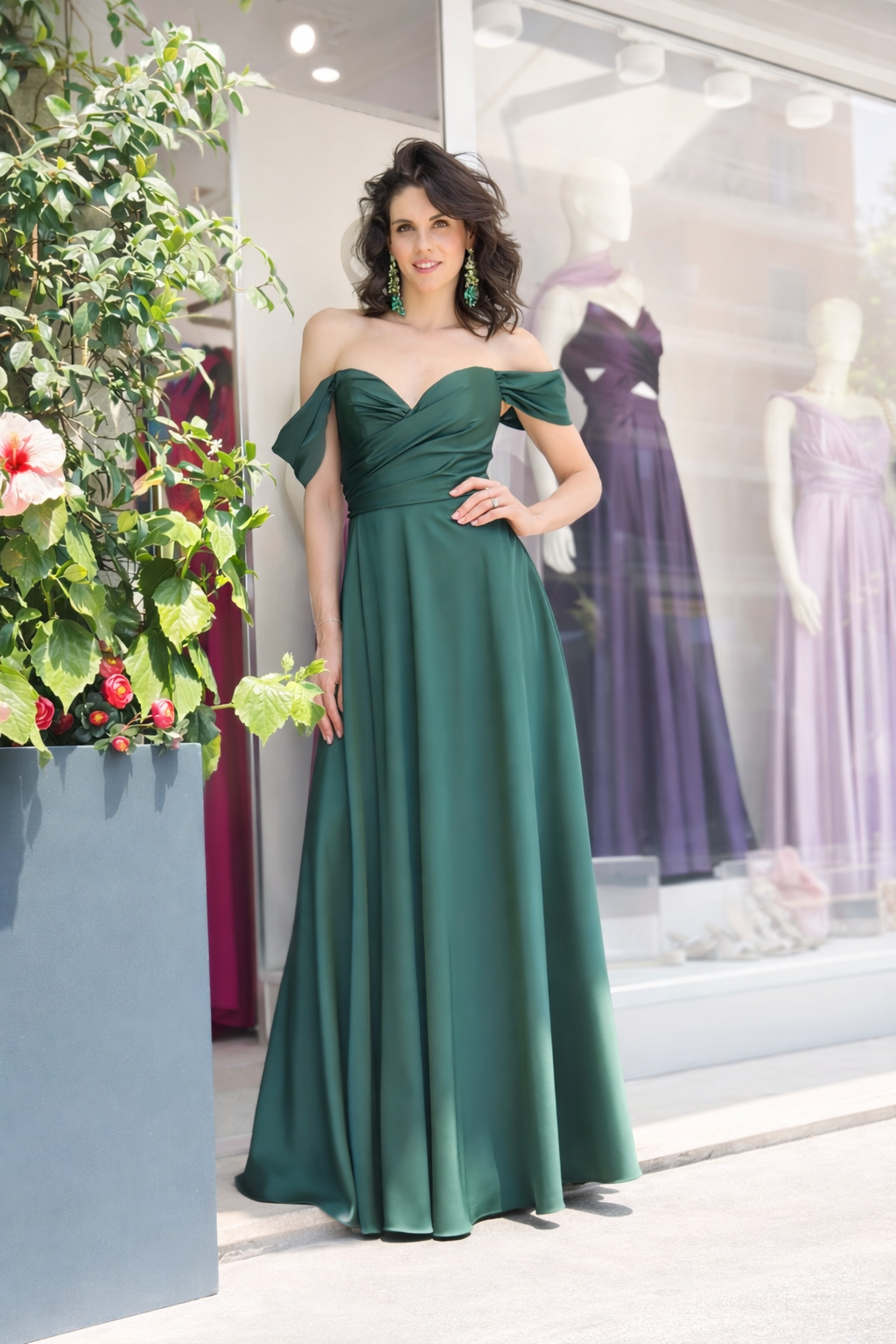 Abito Istanbul lungo da cerimonia con raffinata scollatura omerale che valorizza le spalle e dona un tocco romantico e femminile. Il corpino strutturato definisce il punto vita, mentre la gonna fluida crea movimento e leggerezza ad ogni passo.