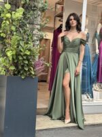 Abito lungo con scollatura omerale e spacco – Ideale per damigelle e diciottesimo
