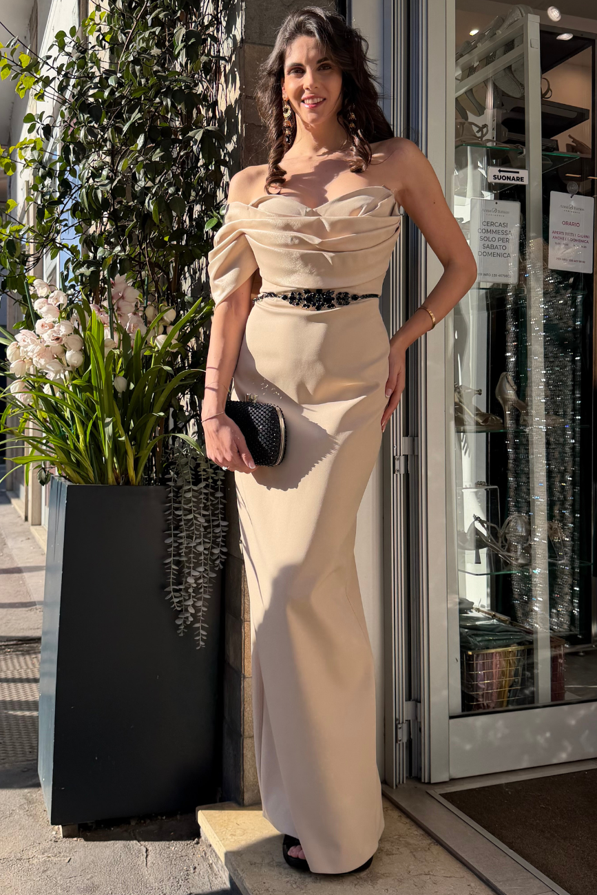 Un abito da cerimonia donna ideale per chi cerca un look sofisticato, femminile e di forte impatto, senza rinunciare alla classe.